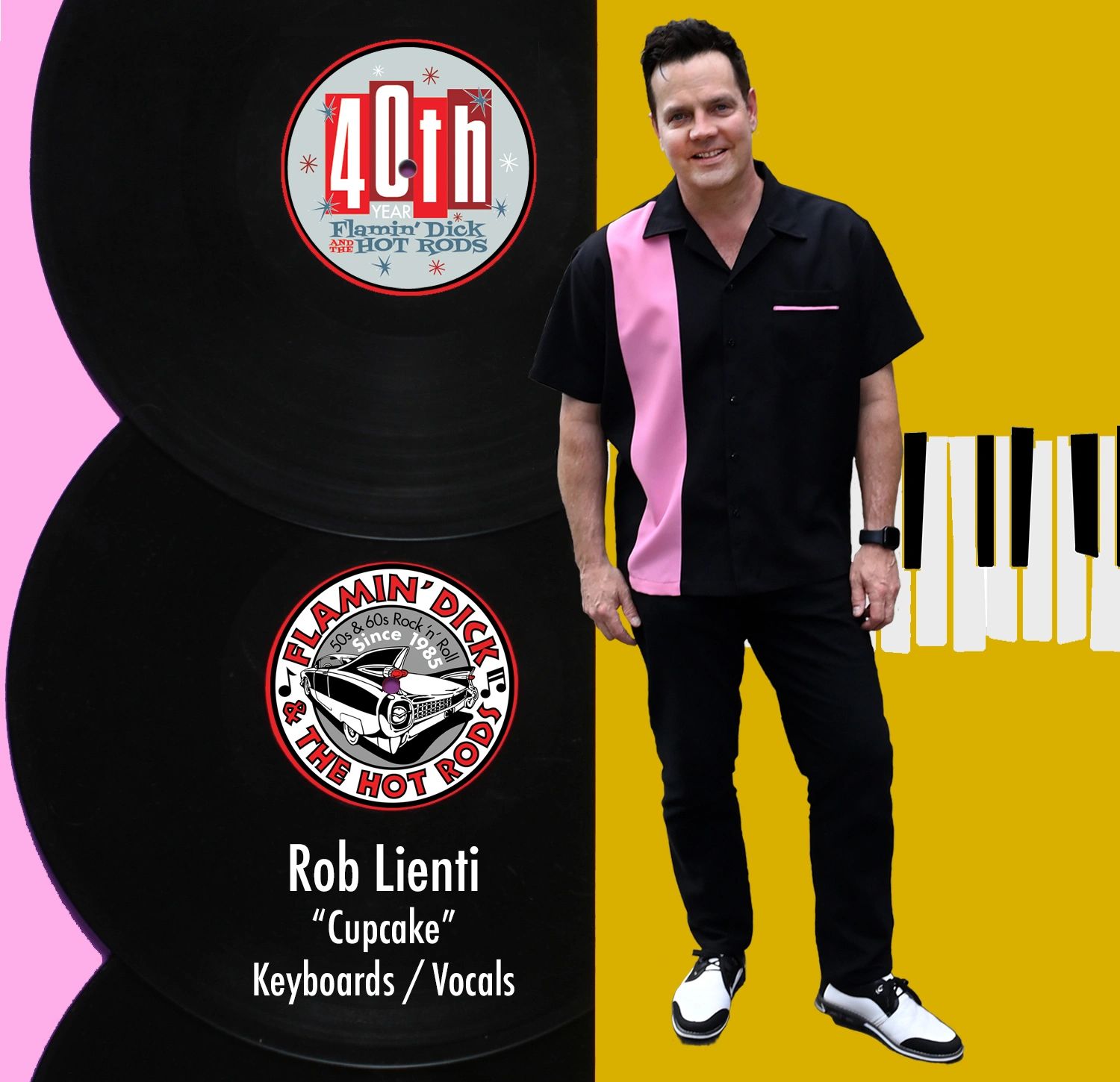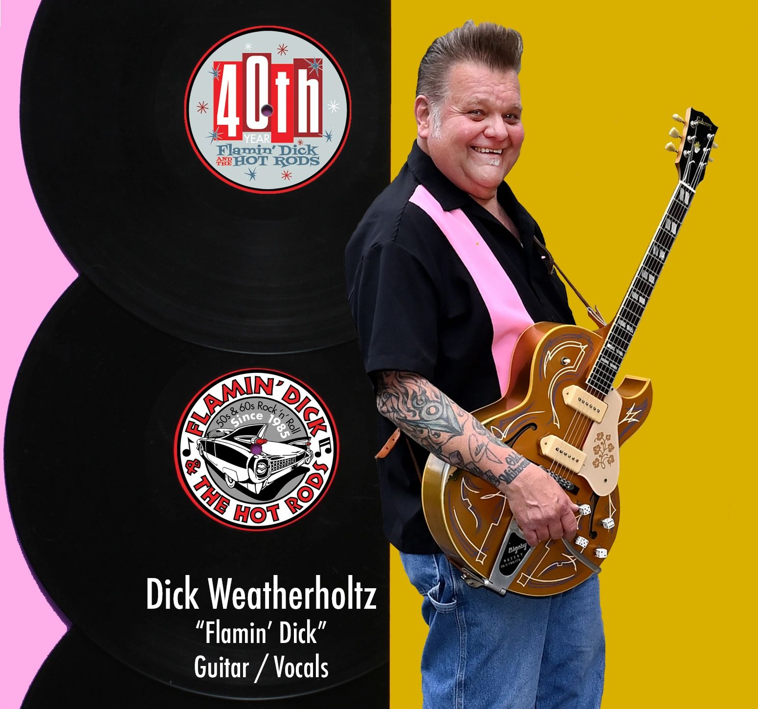 Dick's guitar playing and singing style was influenced by guitar players like Eddie Cochran, Chuck Berry, and Scotty Moore and his love of Jerry Lee Lewis' singing style. Also, this Flamin' Dick thing is not what you think!"
